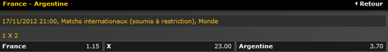 Ici Bwin propose des paris sur le test-match France-Argentine en rugby et considère la France comme favorite.